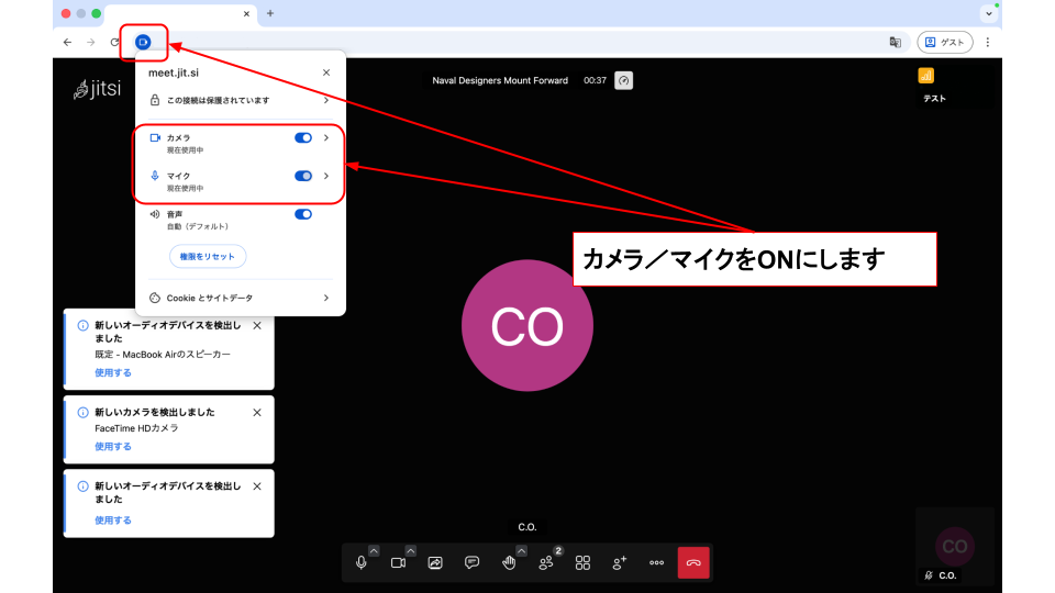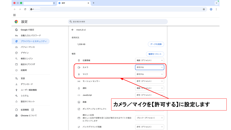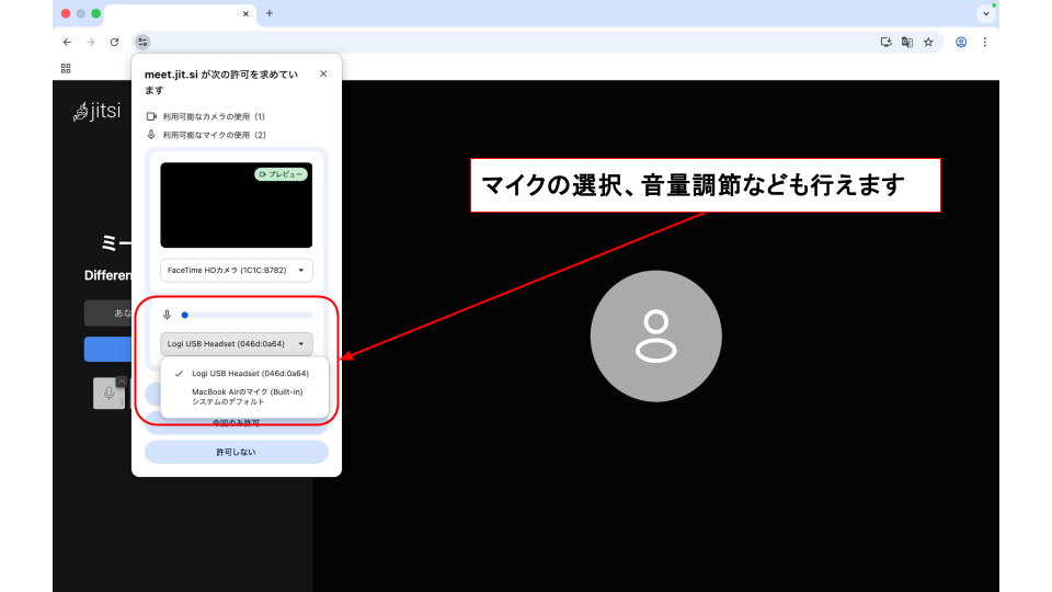 Jitsi Meet(ジッチ・ミート)でマイク/カメラを許可する