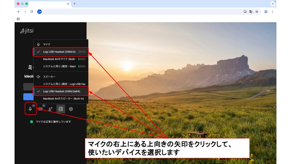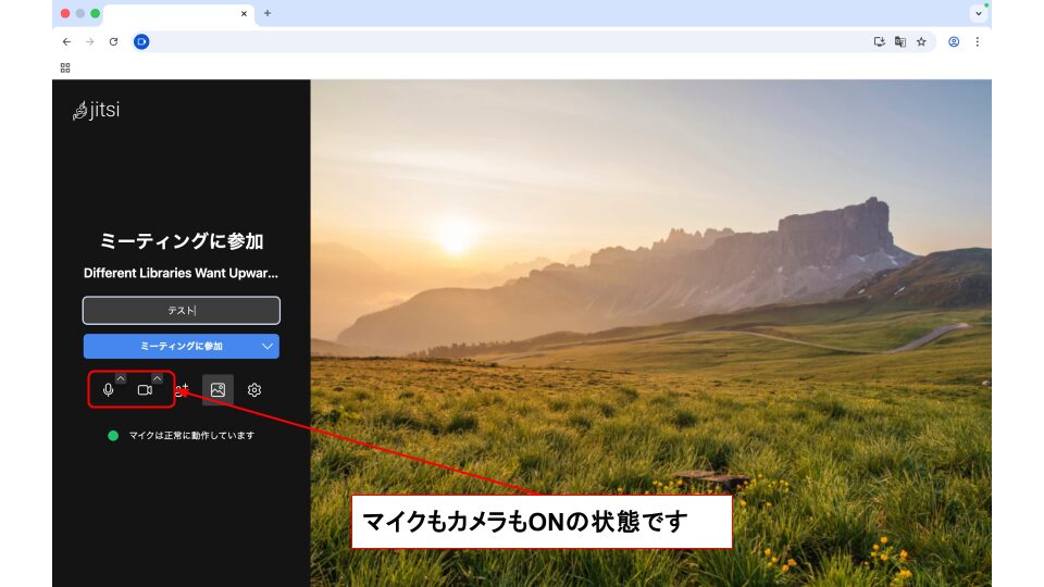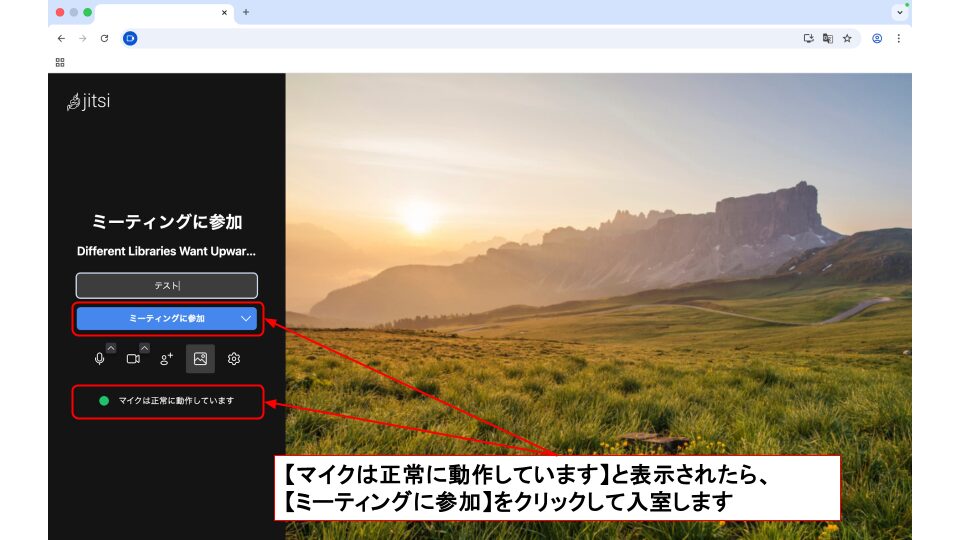 「マイクは正常に動作しています」と表示されたらミーティングに参加する準備完了です!