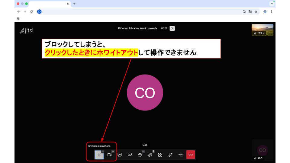 Jitsi Meet(ジッチ・ミート)でマイクを使えないときの1番簡単な対処法でした。 また、画面上ではマイクがON(許可)になっているのにまったく音声が入力/出力されないときは、使用しているヘッドセットなどのデバイス側でミュートボタンを押してしまっていないか確認してください。>>ミュート解除 ミュートボタンを切り替えた上で一度デバイスのUSBを外し、挿し直すのがおすすめです。