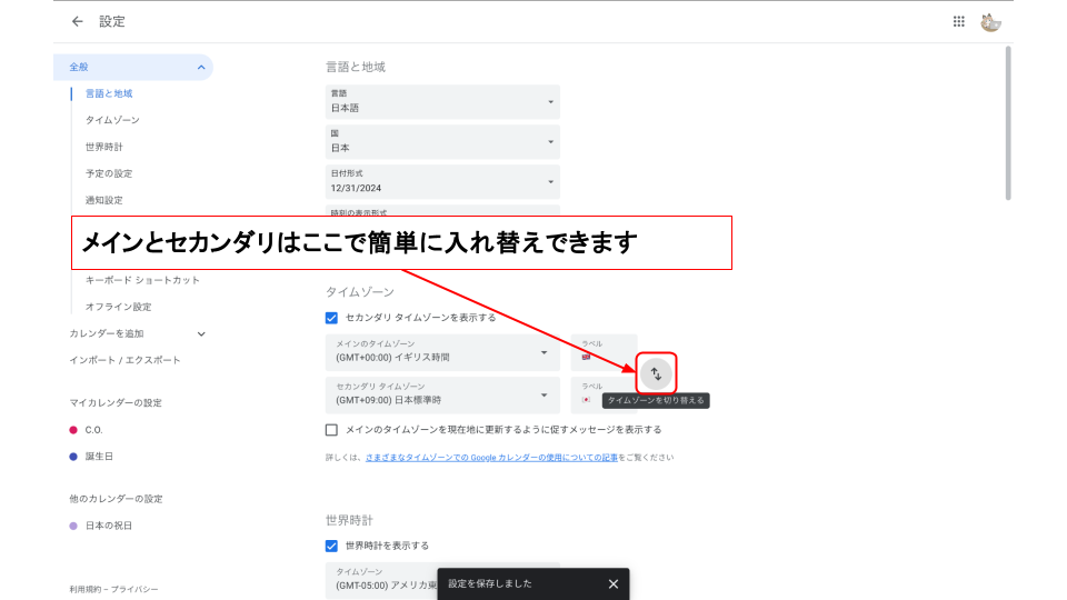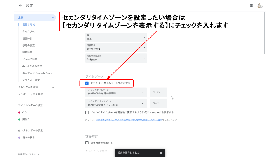 Googleカレンダーのタイムゾーン設定方法|メインとセカンダリの活用術