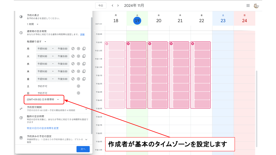 Googleカレンダーや予約スケジュール機能で必要になるタイムゾーンの設定方法について解説します。