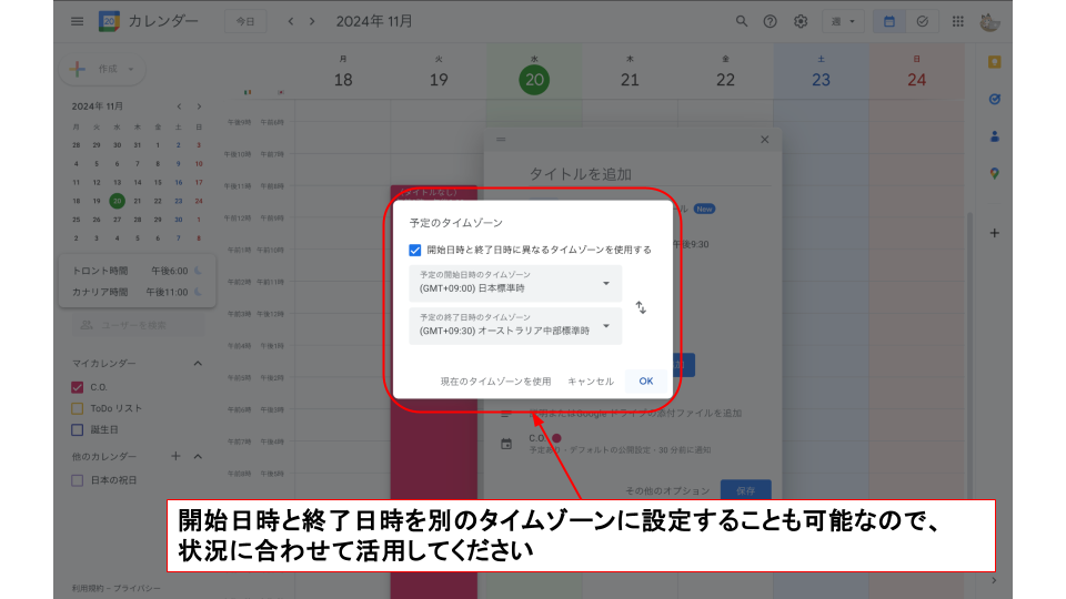 タイムゾーンをまたぐスケジュールでぜひ活用してみてください