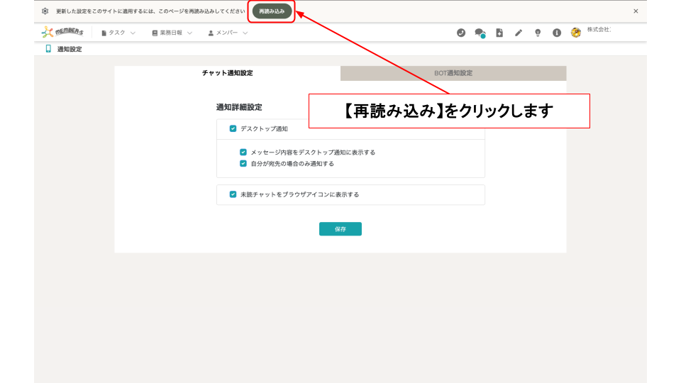 設定を変更した後は再読み込みボタンが出るので必ずクリックしてください。