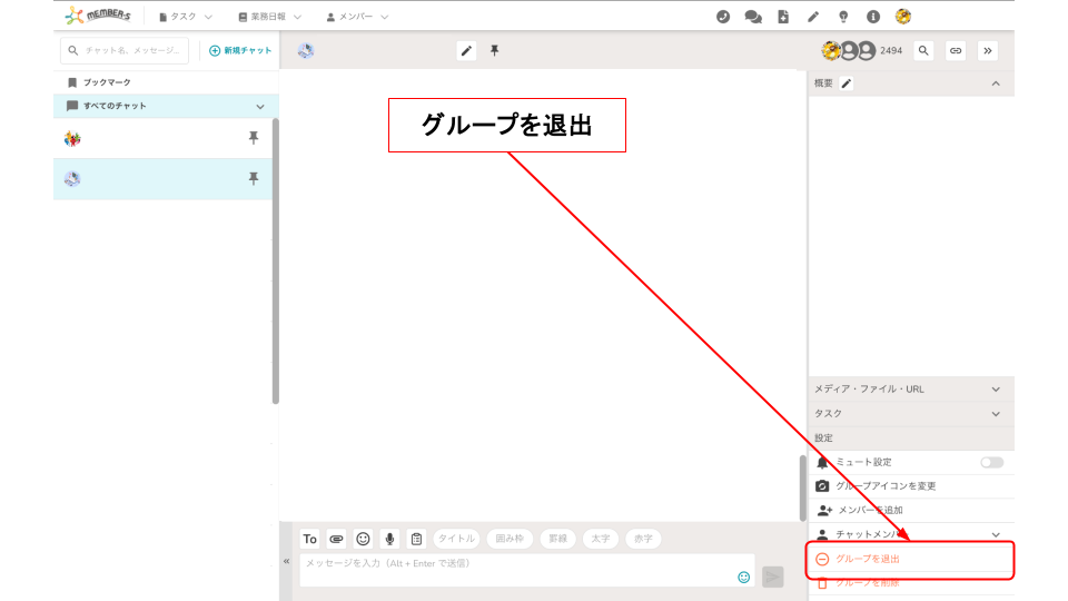 ※例:[3 (2)]MEMBER-S =自分が参加しているチャットルームの中で未読のメッセージがあるルーム数は3、自分宛の@(メンション)は2件