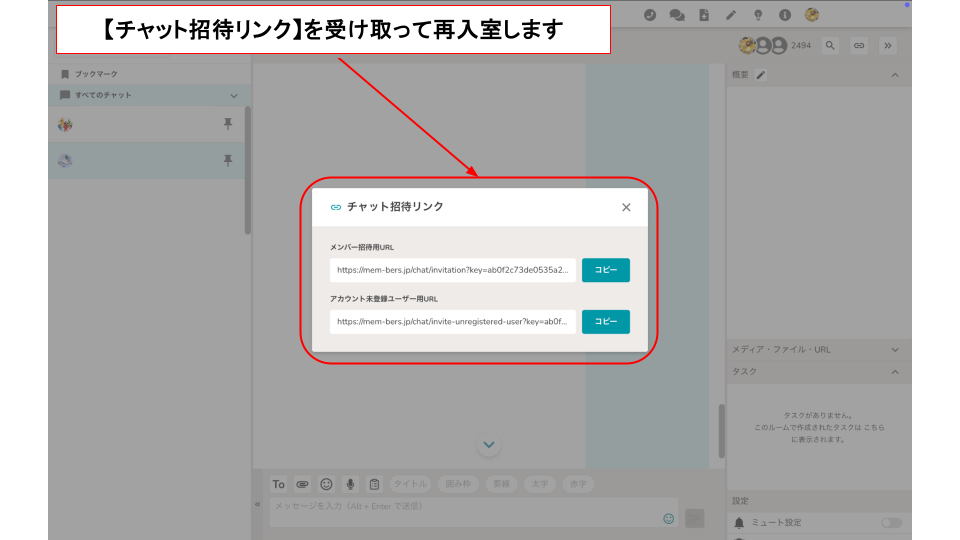 自分に送られてきたチャットを確認したら、必ず毎回マイチャットへ戻りましょう。他のチャットルームを開いた状態にしてしまうと、新しく自分宛にメッセージが来ても通知されません。