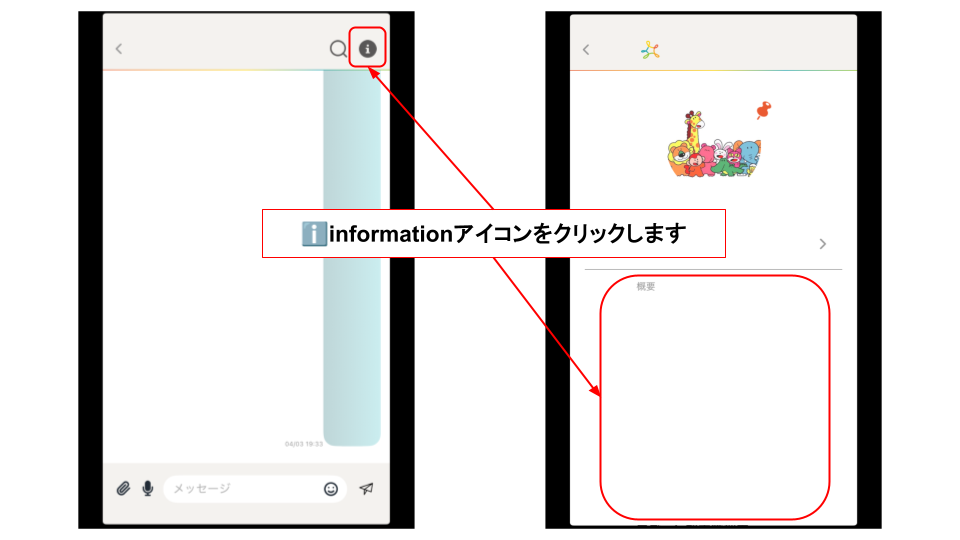 ミュート設定をはじめ、概要を確認したいときはℹ️(information)アイコンから開きます!