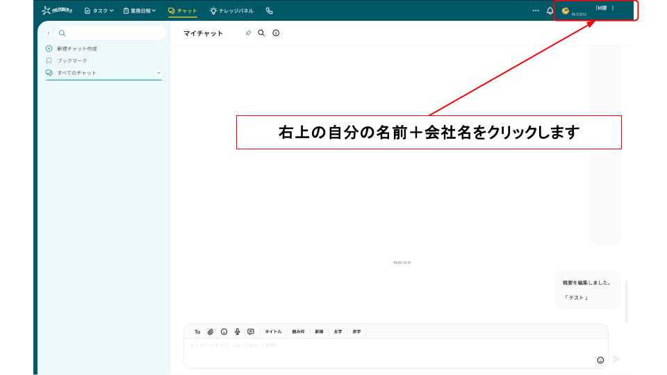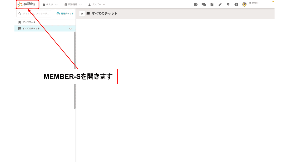 メンバーズの右上にある[自分の名前+○◯○○会社(自分の所属している会社名)]をクリックします。