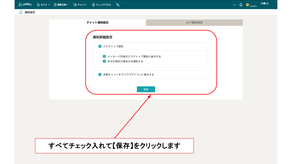 「デスクトップ通知を表示」には必ずチェックを入れます。